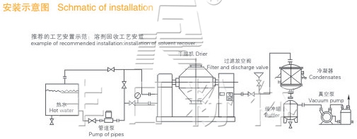 ● 物料处于真空状态,蒸汽压下降使物料表面的水份(溶剂)达到饱和状态而蒸发了,并由真空泵及时排出回收。物料内部的水份(溶剂)不断的向表面渗透、蒸发、排出,三个过程不断进行,物料在很短时间内达到干燥目的。