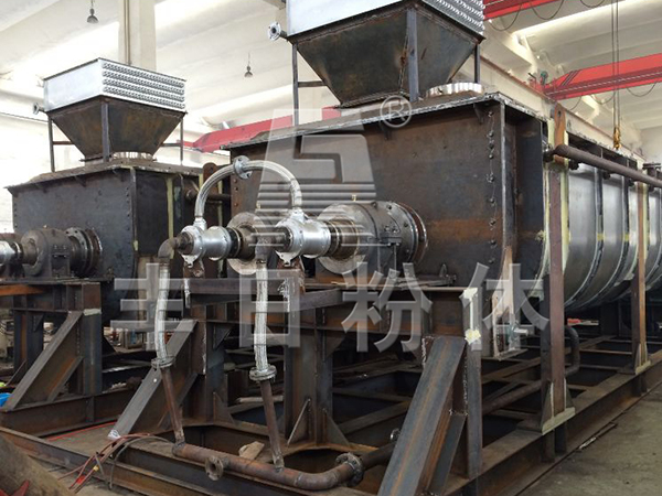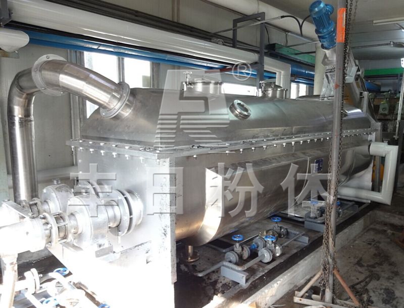 浆叶干燥机已成功地用于食品、化工、石化、染料、工业污泥等领域。设备传热、冷却、搅拌的特性使之可以完成以下单元操作:燃烧(低温)、冷却、干燥(溶剂回收)加热(融化)、反应和灭菌。搅拌浆叶同时又是传热面,使单位有效容积内传热面积增大,缩短了处理时间。楔型浆叶传热面又具有自清洁功能。压缩--膨胀搅拌功能使物料混和均匀。物料沿轴向成'活塞流'运动,在轴向区间内,物料的温度、湿度、混合度梯度很小。用导热油做热介质浆叶干燥机可完成低温燃烧工作。如:二水硫酸钙(Ca2SO4·2H2O) 燃烧转化为半水硫酸钙(Ca2SO4·1/22H2O)。碳酸氢钠(NaHCO3)经煅烧转化为纯碱(Na2HCO3)等。通入冷却介质,如水、冷却盐水等即可用来冷却。如:使用于纯碱行业的浆叶式凉碱机,取代老式的空气冷却凉碱机,节省了能源及尾气处理设备,降低了操作费用。干燥,设备主要的功能,不使用热空气,使溶剂回收、能源消耗、环境控制处于易处理的理想状态。对需回收溶剂、易燃易氧化热敏性物料尤为适应。已广泛用于精细化工、石化、染料行业。轴向区间内,温度、湿度、混合度的均匀性,使得设备可用来加热或融化,或进行一些固体物料反应。在复合肥及变性淀粉行业均已成功使用。浆叶干燥机可用来对食物和面粉进行灭菌处理。单位有效容积内大的加热面积,很快就将物料加热到灭菌温度,避免了长时间加热而改变物料品质。