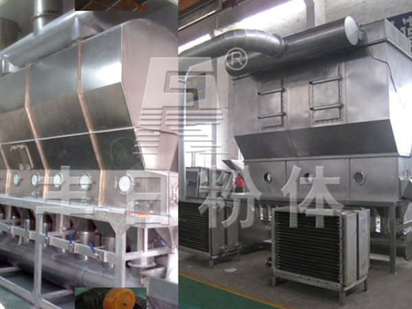 沸腾干燥,又称流化床,它是由空气过滤器、加热器、沸腾床主机、旋风分离器、布袋除尘器、高压离心风机、操作台组成,由于干燥物料的性质不同,配套除尘设备时,可按需要考虑,可同时选择旋风分离器、布袋除尘器,也可选择其中一种,一般来说比重较大的如冲剂及颗粒物料干燥只需选择旋风分离器,比重较轻的小颗粒状和粉状物料需配套布袋除尘器,并备有气力送料装置及皮带输送机供选择。